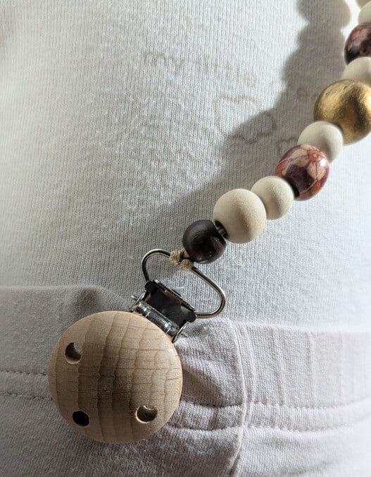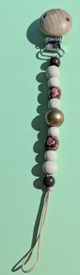 Attache tétine, doré & brun