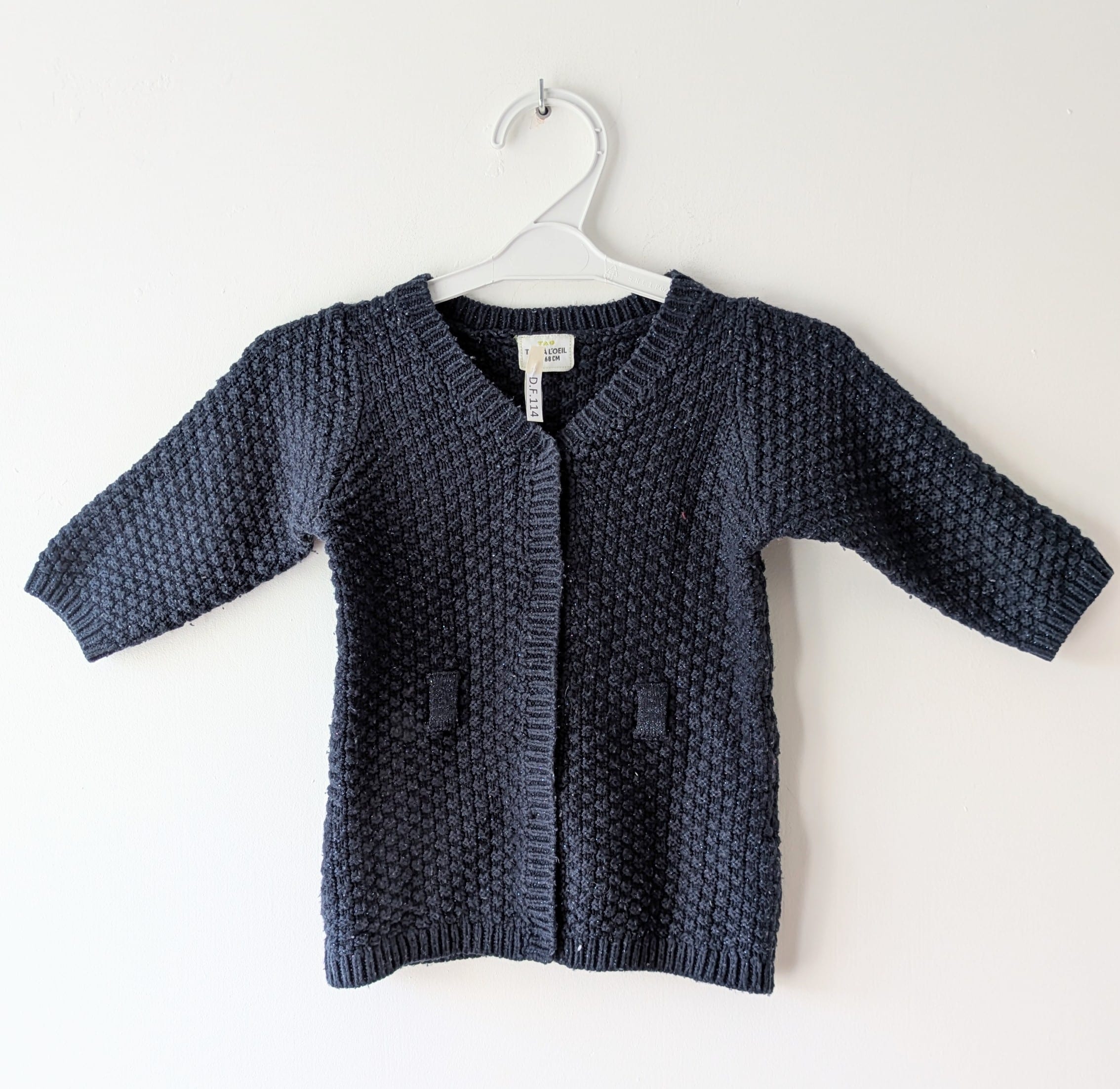 Etat : A déjà vécu quelques aventures, mais reste tout joli ( ni trou / ni tâches ) ⭐⭐ Taille : 6 Mois Matière : 95% acrylique / 3% polyester / 2% fibres métalliques Marque : Tape à l’œil Réf : D.F.114